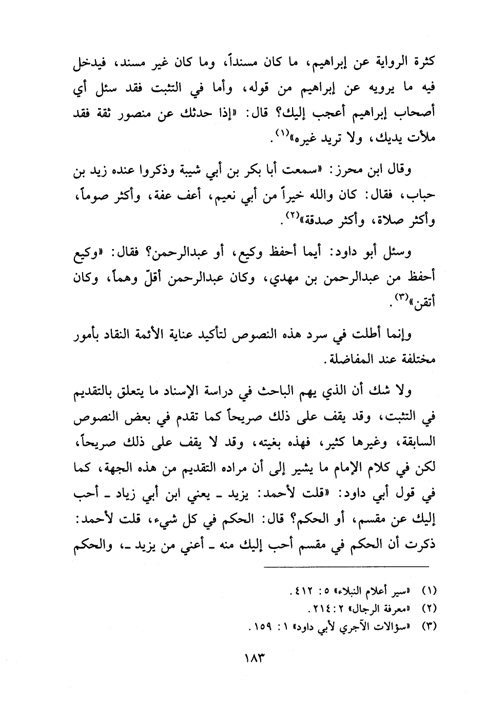 ولا شك أن الذي يهم الباحث في دراسة الإسناد ما يتعلق بالتقديم في التثبت، وقد يقف على ذلك صريحا كما تقدم في بعض النصوص السابقة، وغيرها كثير، فهذه بغيته، وقد لا يقف على ذلك صريحا، لكن في كلام الإمام ما يشير إلى أن مراده التقديم من هذه الجهة، كما في قول أبي داود: "قلت لأحمد: يزيد -يعني ابن أبي زياد- أحب إليك عن مُقْسِم، أو الحكم؟ قال: الحكم في كل شيء، قلت لأحمد: ذكرت أن الحكم في مُقْسِم أحب إليك منه -أعني من يزيد-، والحكم
