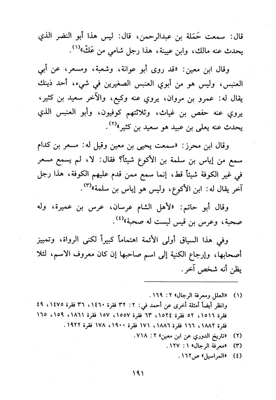 (¬١) "العلل ومعرفة الرجال"٢: ١٦٩.