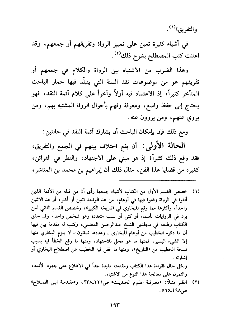 وهذا الضرب من الاشتباه بين الرواة والكلام في جمعهم أو تفريقهم هو من موضوعات نقد السنة التي يتبلد فيها حمار الباحث المتأخر كثيرا، إذ الاعتماد فيه أولا وآخرا على كلام أئمة النقد، فهو يحتاج إلى حفظ واسع، ومعرفة وفهم بأحوال الرواة المشتبه بهم، ومن يروي عنهم، ومن يروون عنه.