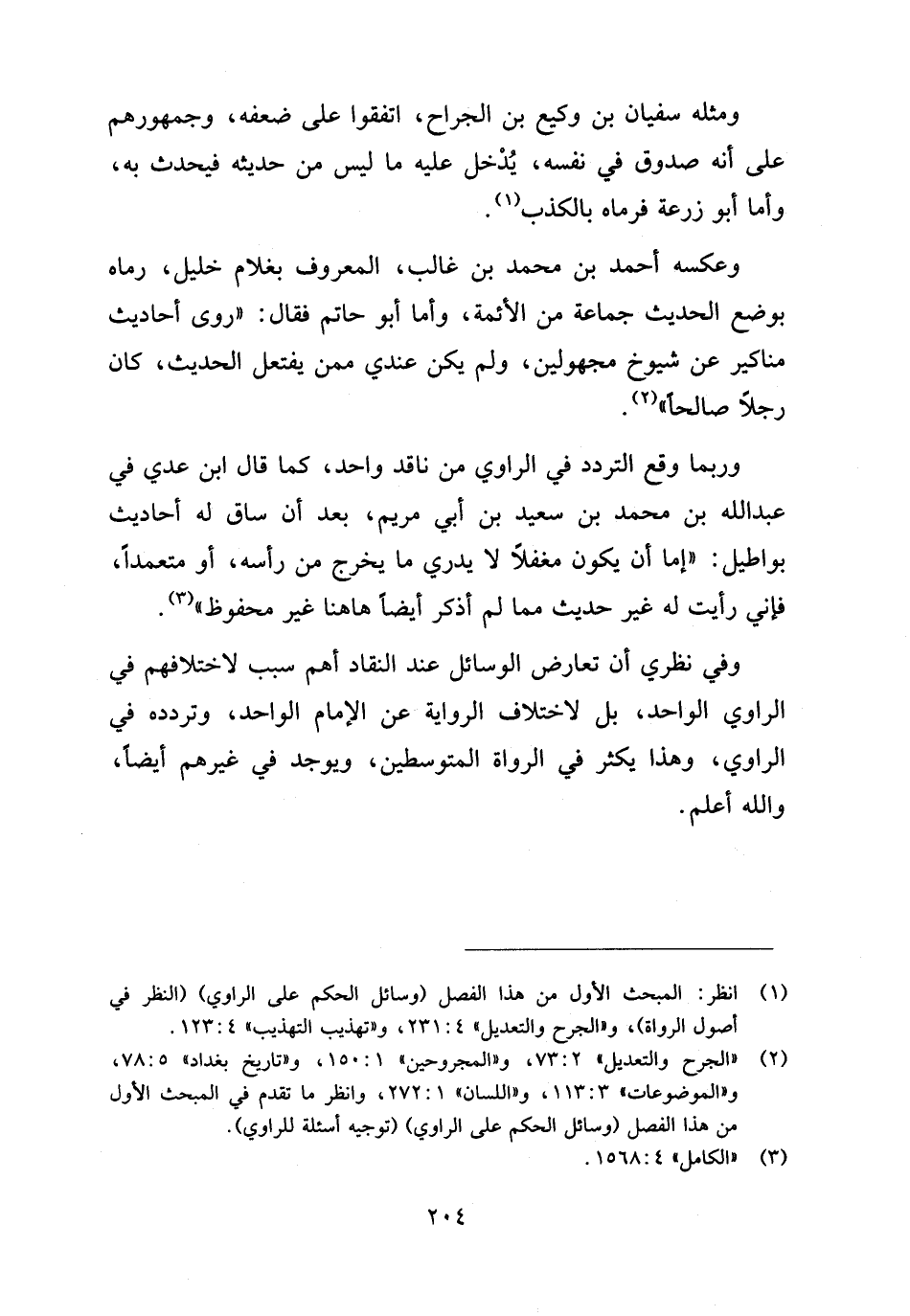 وفي نظري أن تعارض الوسائل عند النقاد أهم سبب لاختلافهم في الراوي الواحد، بل لاختلاف الرواية عن الإمام الواحد، وتردده في الراوي، وهذا يكثر في الرواة المتوسطين، ويوجد في غيرهم أيضا، والله أعلم.