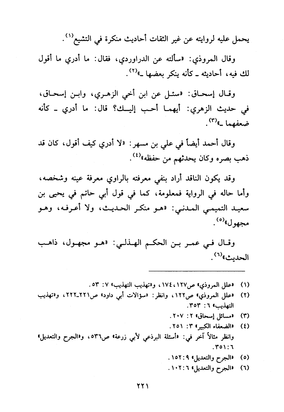 (¬١) "علل المروذي" ص ١٢٧، ١٧٤، و"تهذيب التهذيسب"٧: ٥٣.