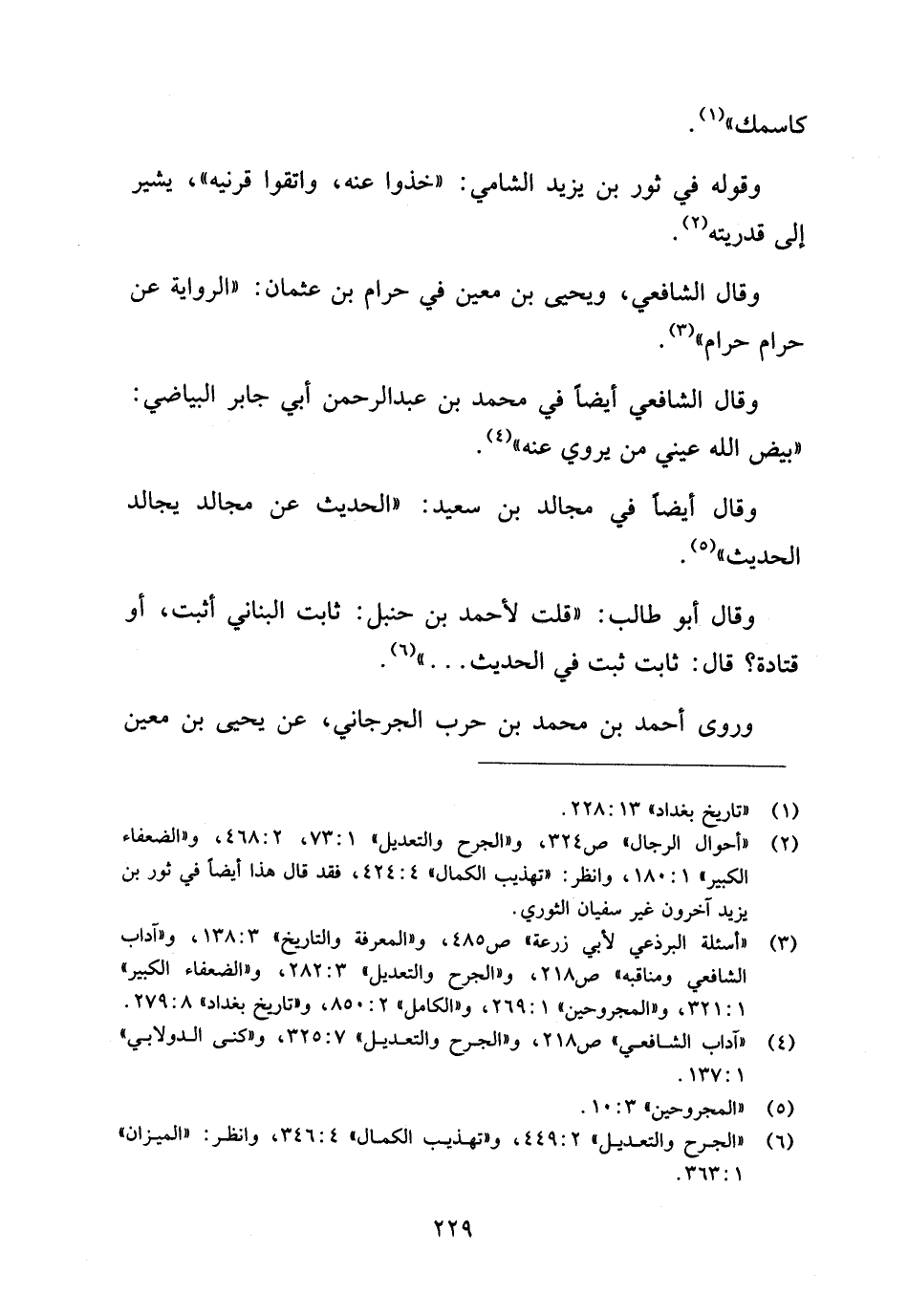 (¬٢) "أحوال الرجال" ص ٣٢٤، "الجرح والتعديل"١: ٧٣، ٢: ٤٦٨، و"الضعفاء الكبير"١: ١٨٠، وانظر: "تهذيب الكمال"٤: ٤٢٤، فقد قال هذا أيضا في ثور بن يزيد آخرون غير سفيان الثوري.
