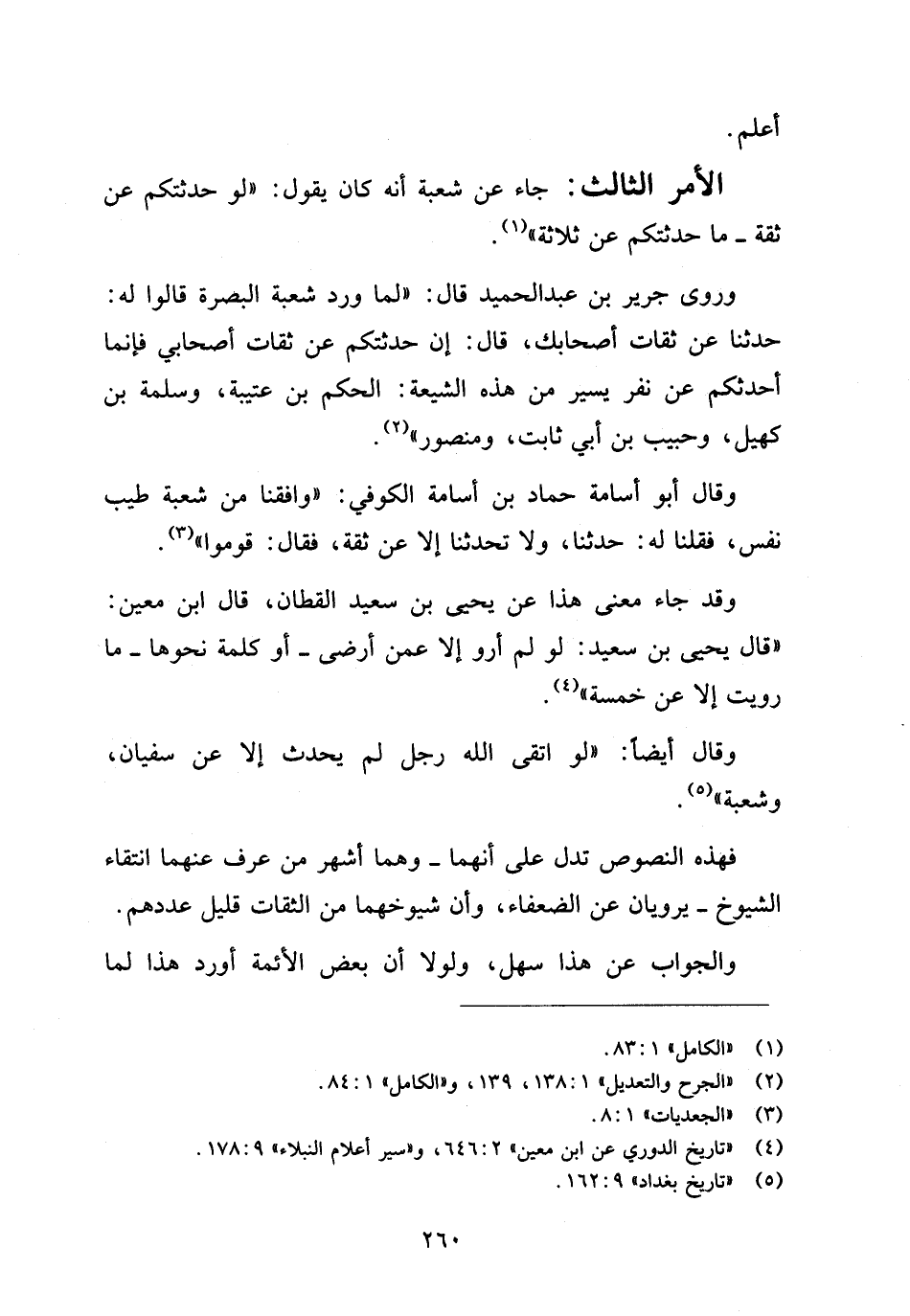 الأمر الثالث: جاء عن شعبة أنه كان يقول: "لو حدثتكم عن ثقة ما حدثتكم عن ثلاثة" (¬١).