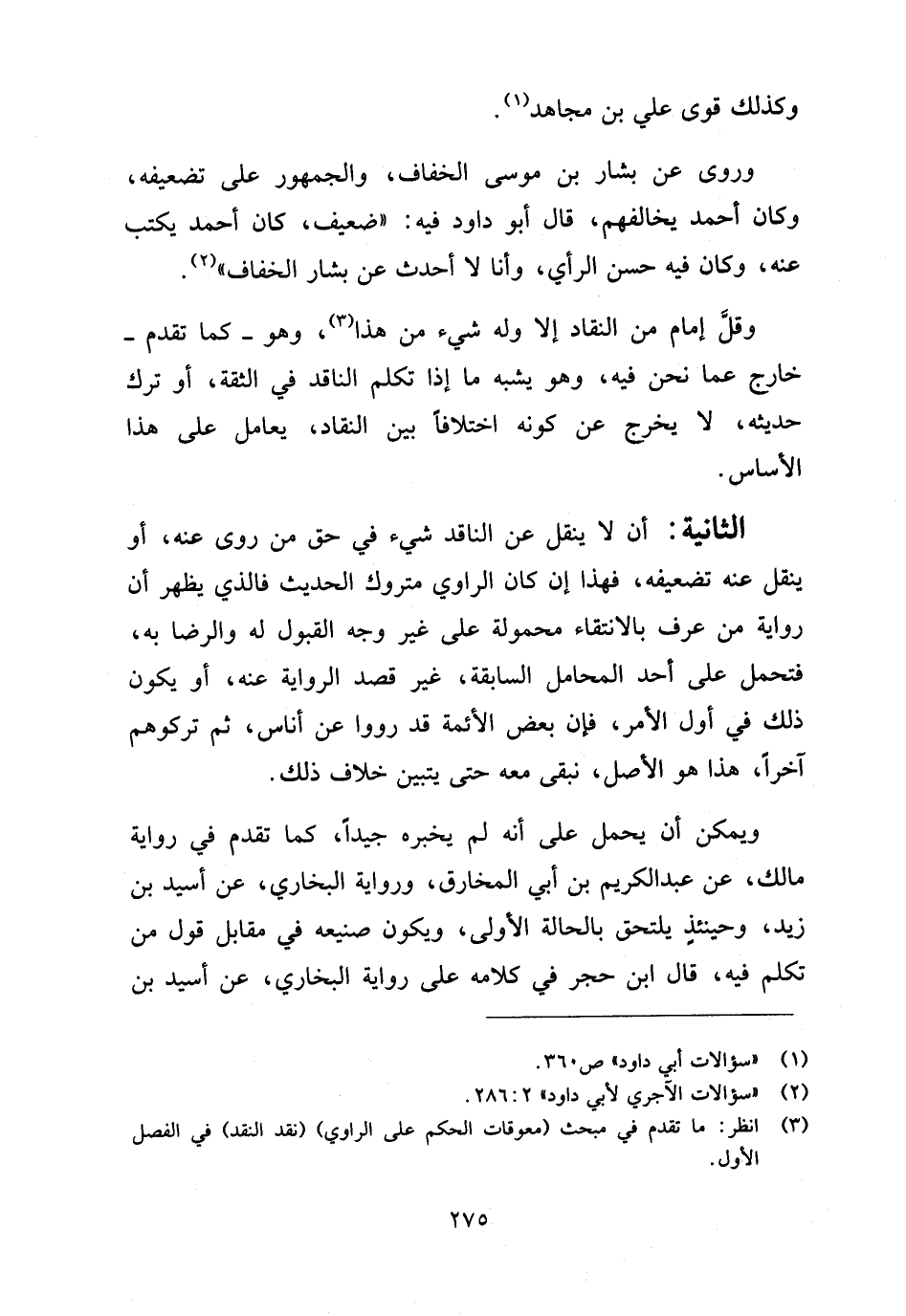 (¬٣) انظر: ما تقدم في مبحث (معوقات الحكم على الراوي) (نقد النقد) في الفصل الأول.