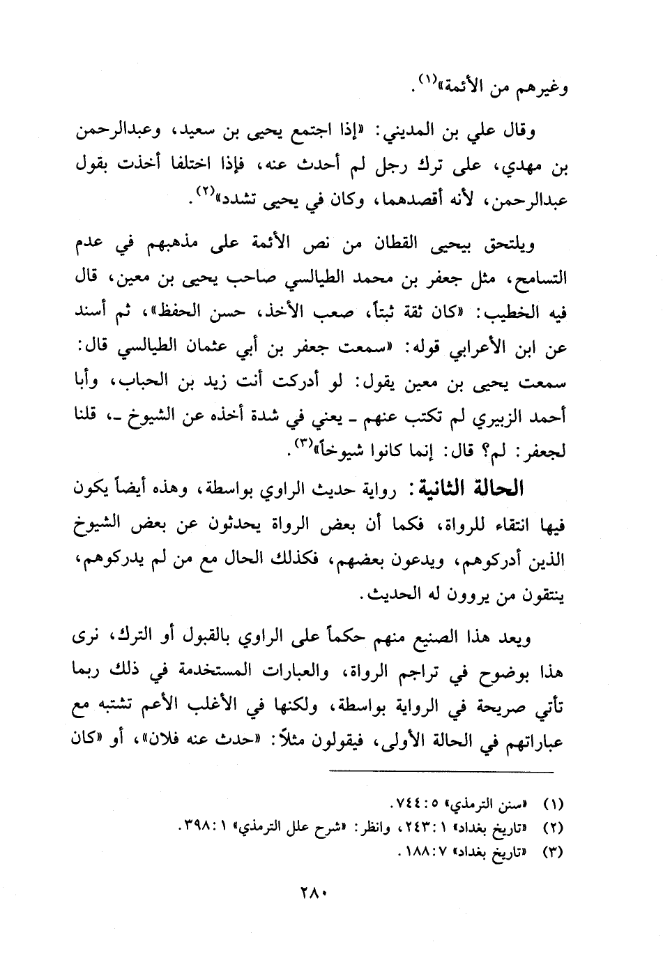 (¬٢) "تاريخ بغداد"١: ٢٤٣، وانظر: "شرح علل الترمذي"١: ٣٩٨.