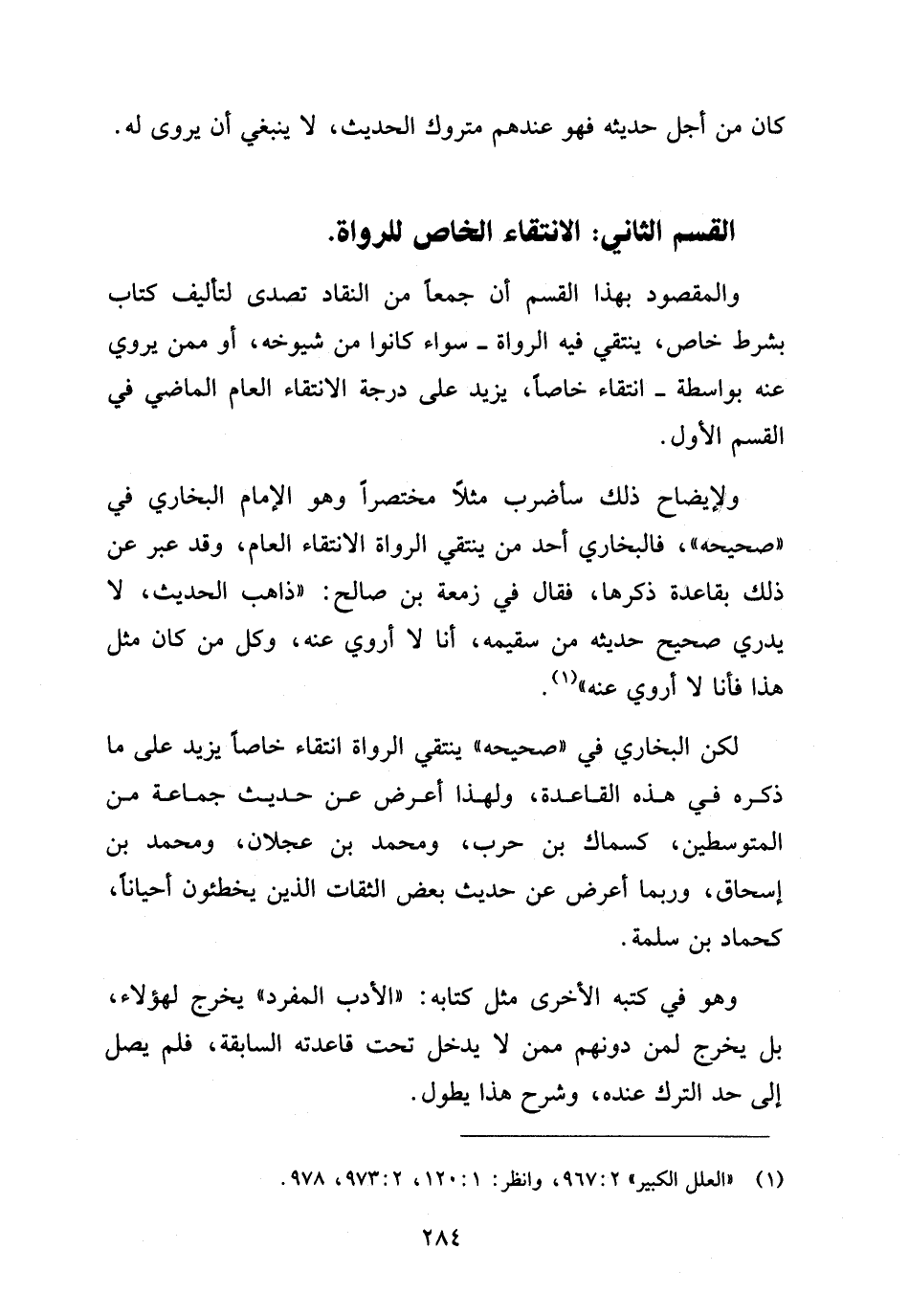 وهو في كتبه الأخرى مثل كتابه: "الأدب المفرد" يخرج لهؤلاء، بل يخرج لمن دونهم ممن لا يدخل تحت قاعدته السابقة، فلم يصل إلى حد الترك عنده، وشرح هذا يطول.