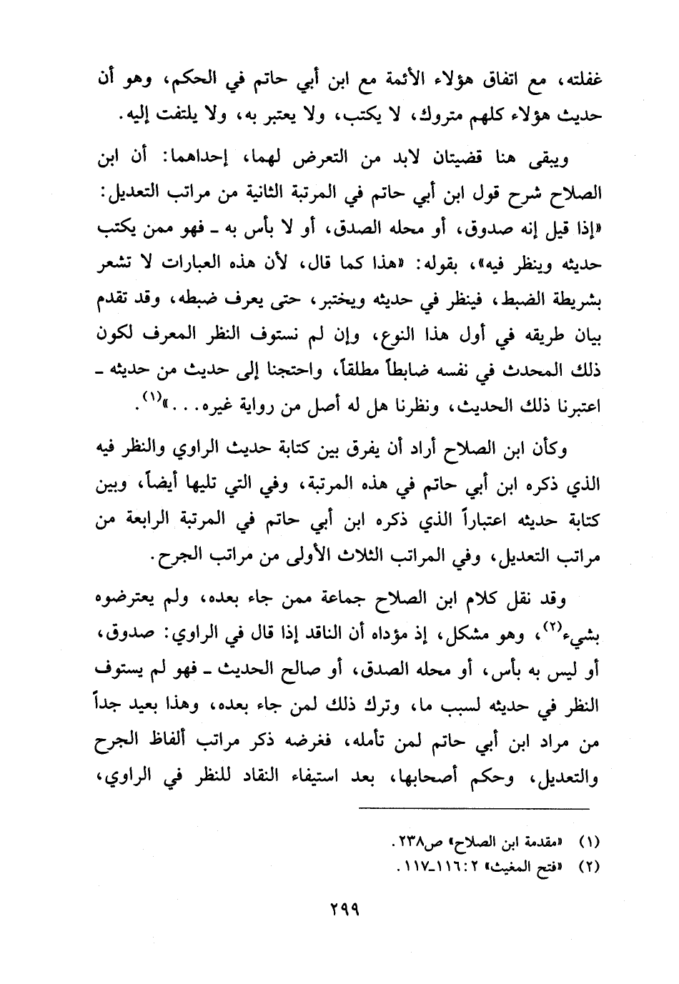 وكأن ابن الصلاح أراد أن يفرق بين كتابة حديث الراوي والنظر فيه الذي ذكره ابن أبي حاتم في هذه المرتبة، وفي التي تليها أيضا، وبين كتابة حديثه اعتبارا الذي ذكره ابن أبي حاتم في المرتبة الرابعة من مراتب التعديل، وفي المراتب الثلاث الأولى من مراتب الجرح.