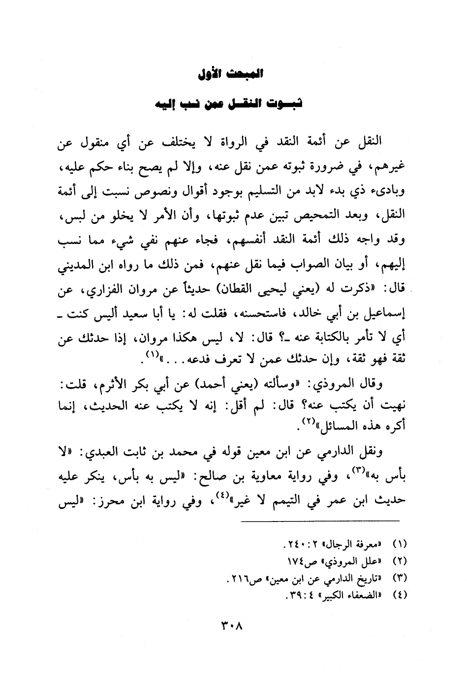 المبحث الأول: ثبوت النقل عمن نسب إليه
