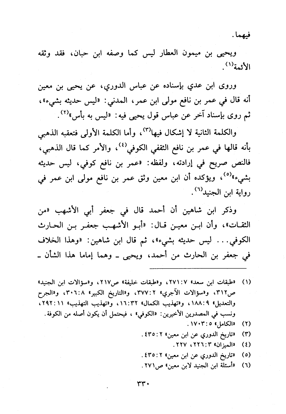 (¬٣) "تاريخ الدوري عن ابن معين"٢: ٤٣٥.