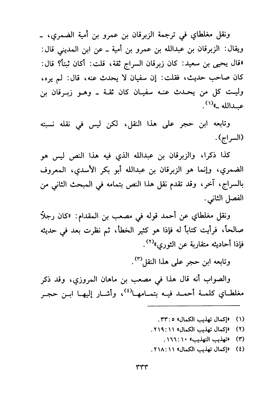 (¬٤) "إكمال تهذيب الكمال"١١: ٢١٨.