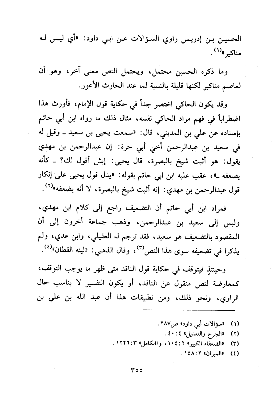 فمراد ابن أبي حاتم أن التضعيف راجع إلى كلام ابن مهدي، وليس إلى سعيد بن عبد الرحمن، وذهب جماعة آخرون إلى أن المقصود بالتضعيف هو سعيد، فقد ترجم له العقيلي، وابن عدي، ولم يذكرا في تضعيفه سوى هذا النص (¬٣)، وقال الذهبي: "لينه القطان" (¬٤).