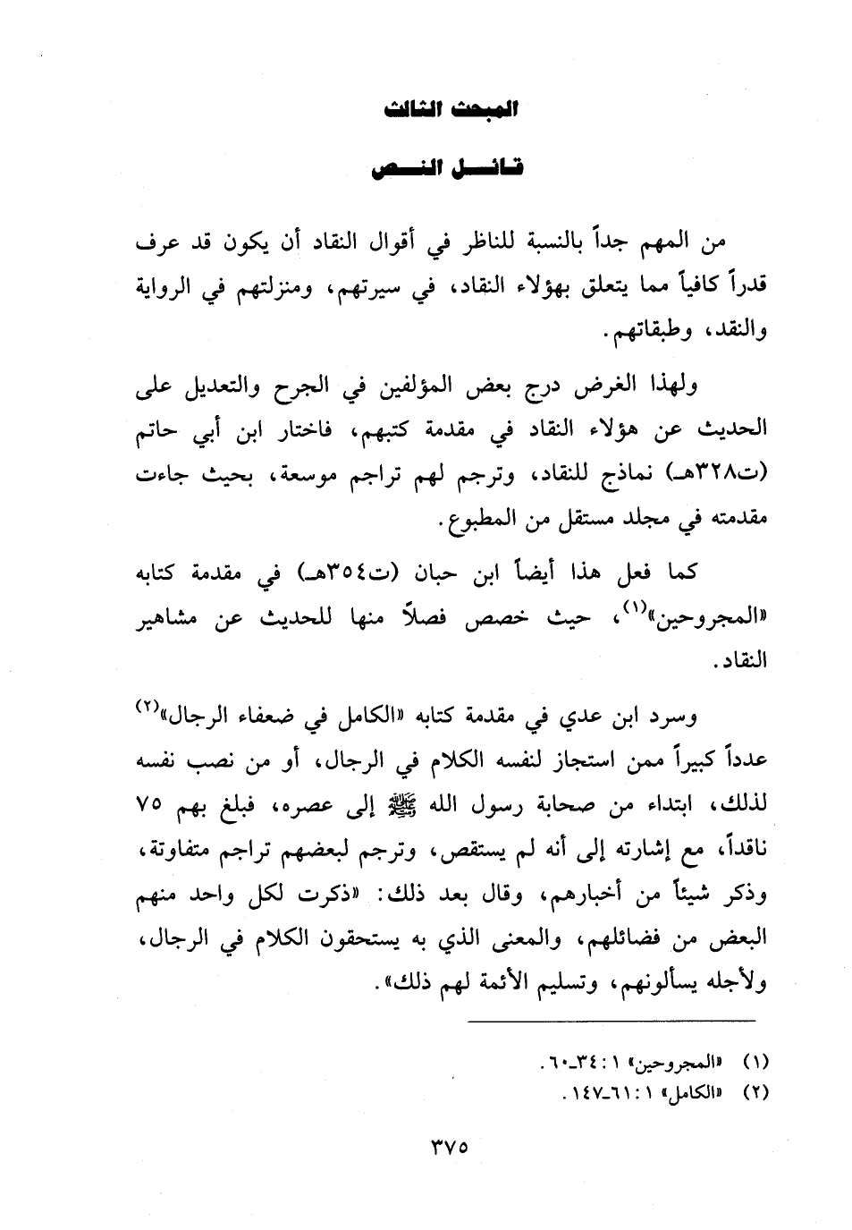 كما فعل هذا أيضا ابن حبان (ت ٣٥٤ هـ) في مقدمة كتابه "المجروحين" (¬١)، حيث خصص فصلا منها للحديث عن مشاهير النقاد.