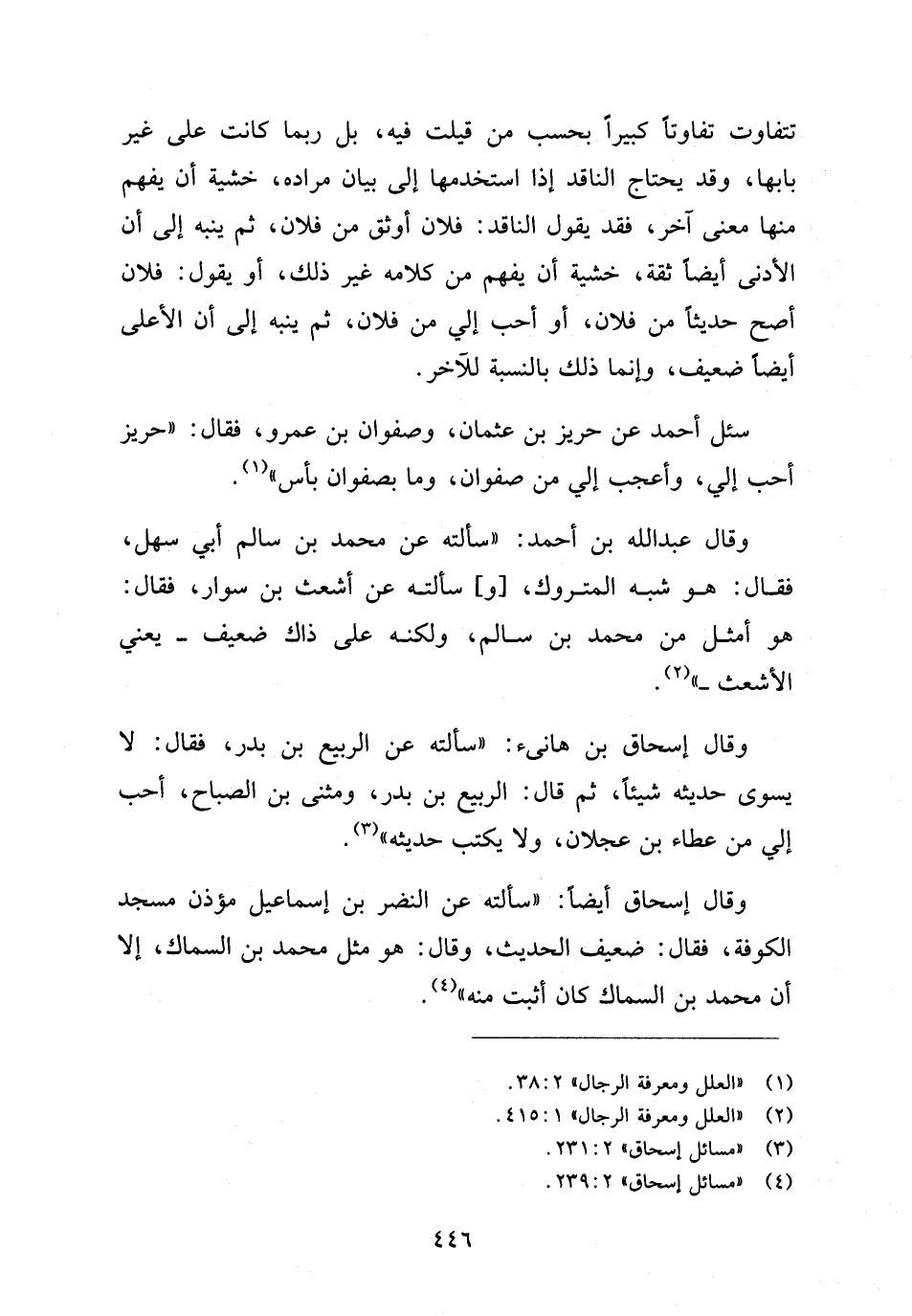 تتفاوت تفاوتا كبيرا بحسب من قيلت فيه، بل ربما كانت على غير بابها، وقد يحتاج الناقد إذا استخدمها إلى بيان مراده، خشبة أن يفهم منها معنى آخر، فقد يقول الناقد: فلان أوثق من فلان، ثم ينبه إلى أن الأدنى أيضا ثقة، خشية أن يفهم من كلامه غير ذلك، أو يقول: فلان أصح حديثا من فلان، أو أحب إلي من فلان، ثم ينبه إلى أن الأعلى أيضا ضعيف، وإنما ذلك بالنسبة للآخر.