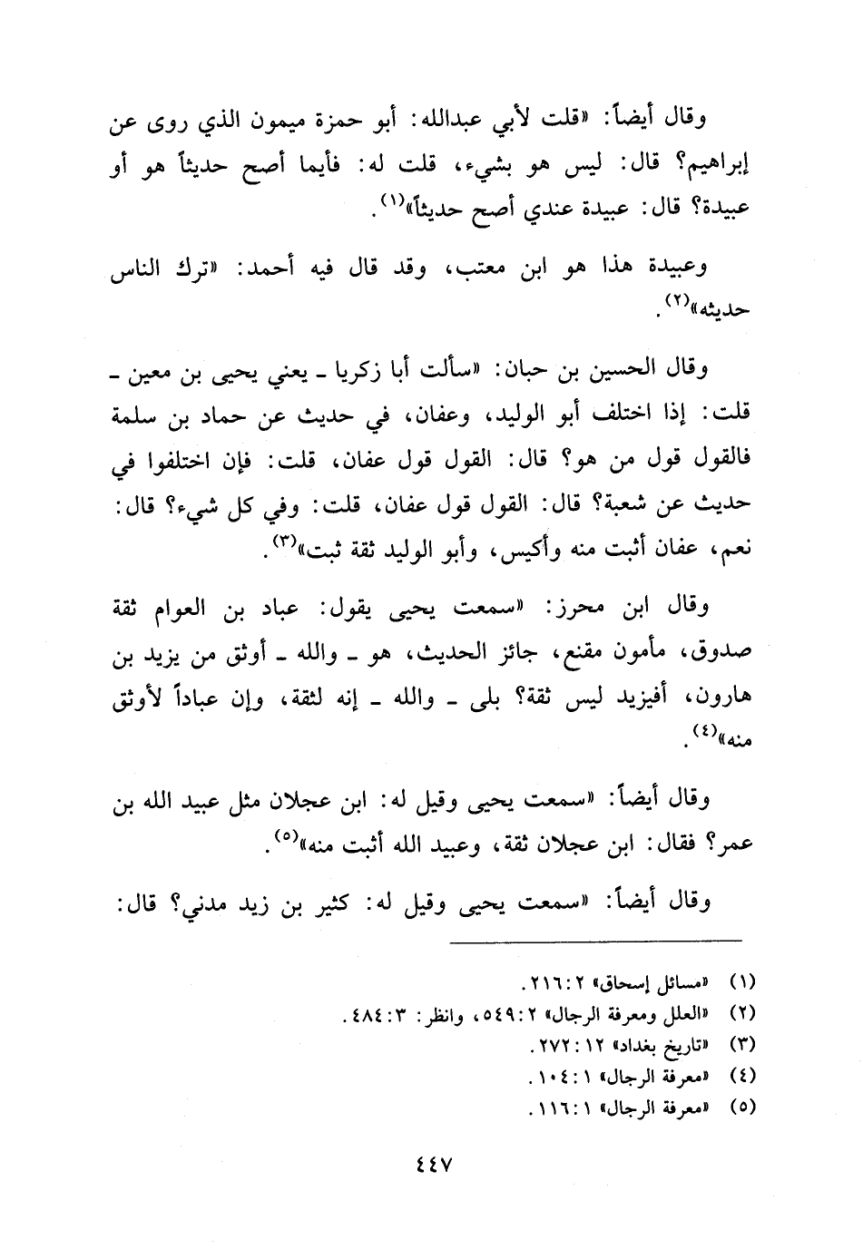 (¬٢) "العلل ومعرفة الرجال"٢: ٥٤٩، وانظر: ٣: ٤٨٤.