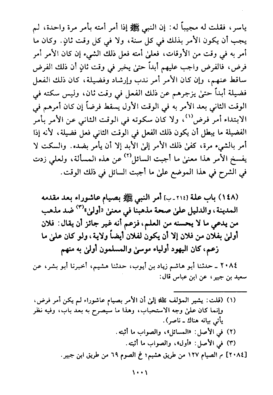 (¬1) (قلت: يشير المؤلف رحمه الله إلى أن الأمر بعام عاشوراء لم يكن أمر فرض، وإنما كان على وجه الاستحباب، وهذا ما يصرح به بعد باب، وفيه نظر يأتي بيانه هناك - ناصر).