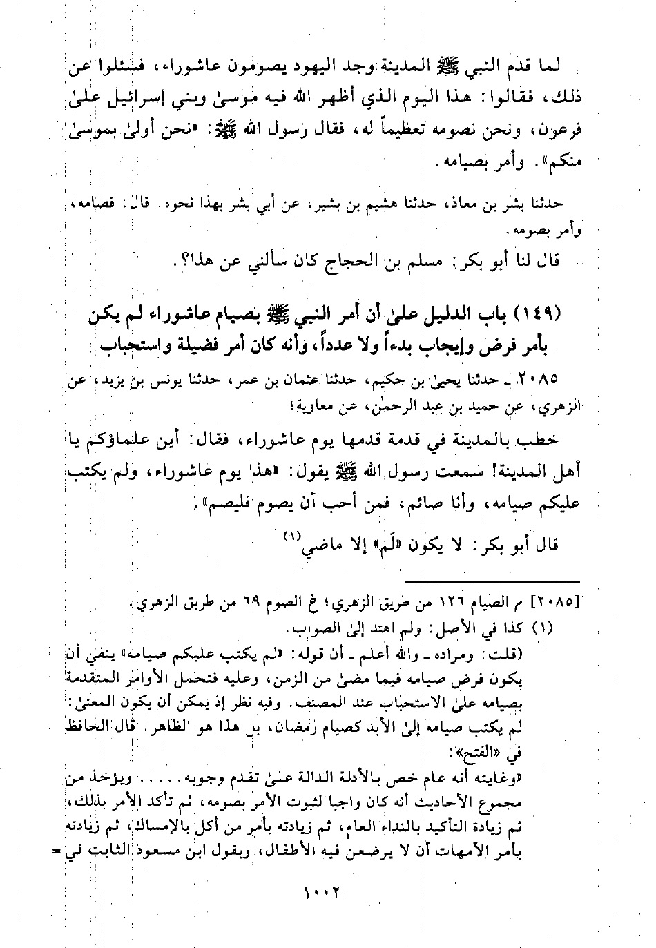 (149) بَاب الدَّلِيلِ عَلَى أَنَّ أَمْرَ النَبِيّ - صَلَّى اللَّه عَلَيْهِ وَسَلَّمَ - بِصِيَامِ عَاشُورَاءَ لَمْ يَكُنْ بِأَمْرِ فَرْضٍ وَإِيجَابٍ بَدْءًا وَلَا عَدَدًا، وَأَنَّهُ كَانَ أَمْرَ فَضِيلَةٍ وَاسْتِحْبَاب