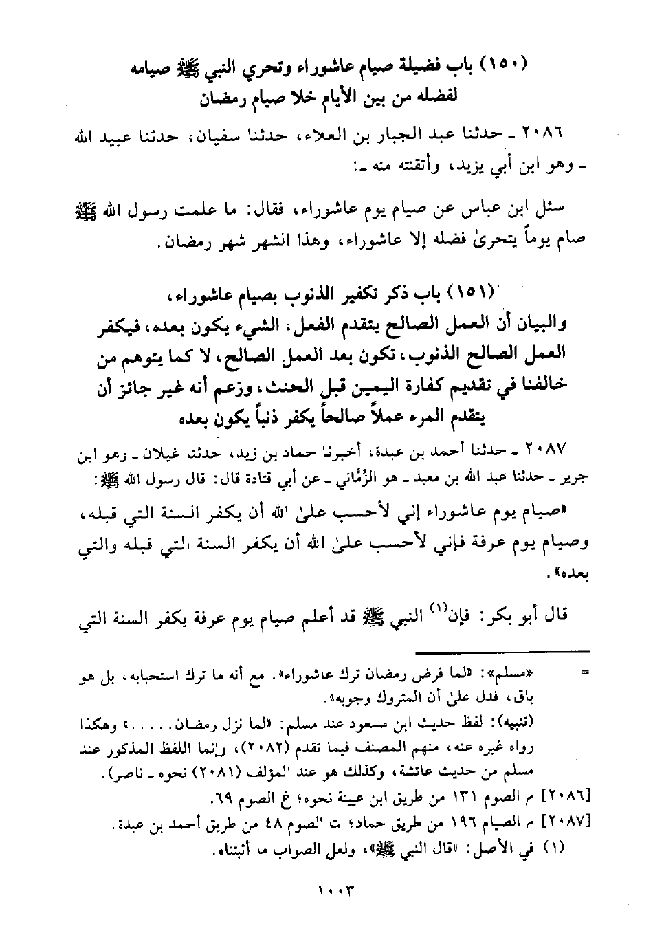 (150) بَاب فَضِيلَةِ صِيَامِ عَاشُورَاءَ وَتَحَرِّي النَبِيّ - صَلَّى اللَّه عَلَيْهِ وَسَلَّمَ - صِيَامَهُ لِفَضْلِهِ مِنْ بَيْنِ الْأَيَّامِ خَلَا صِيَامَ رَمَضَانَ