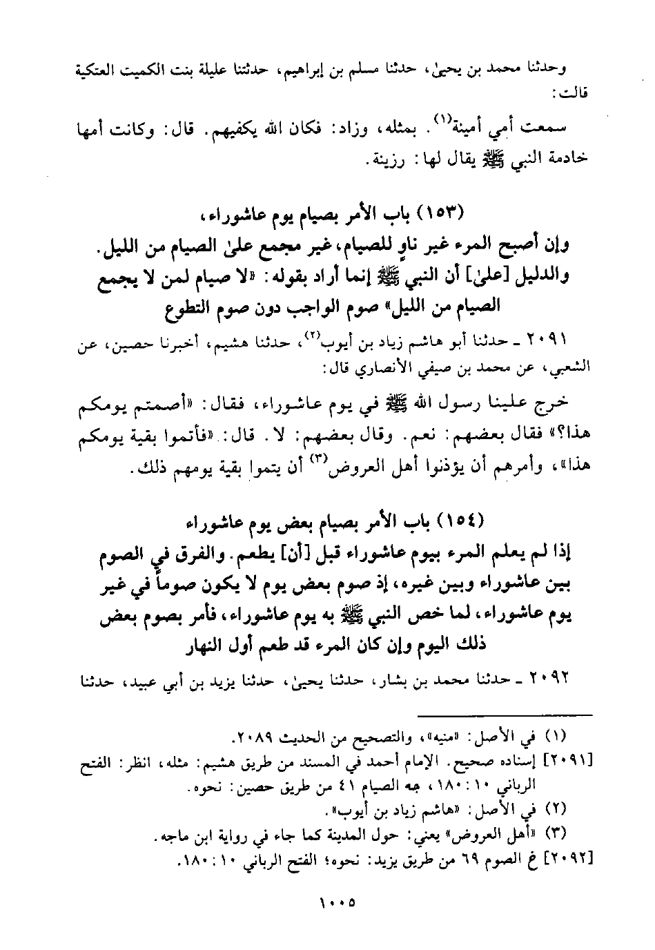 (154) بَاب الْأَمْرِ بِصِيَامِ بَعْضِ يَوْمِ عَاشُورَاءَ إِذَا لَمْ يَعْلَمِ الْمَرْءُ بِيَوْمِ عَاشُورَاءَ قَبْلَ [أَنْ] يَطْعَمَ وَالْفَرَقُ فِي الصَّوْمِ بَيْنَ عَاشُورَاءَ وَبَيْنَ غَيْرهِ، إِذْ صَوْمُ بَعْضِ يَوْمٍ لَا يَكُونُ صَوْمًا فِي غَيْر يَوْمِ عَاشُورَاءَ، لِمَا خَصَّ النَبِيّ - صَلَّى اللَّه عَلَيْهِ وَسَلَّمَ - بِهِ يَوْمَ عَاشُورَاءَ، فَأَمَرَ بِصَوْمِ بَعْضِ ذَلِكَ الْيَوْمِ وَإِنْ كَانَ الْمَرْءُ قَدْ طَعِمَ أَوَّلَ النَّهَارِ