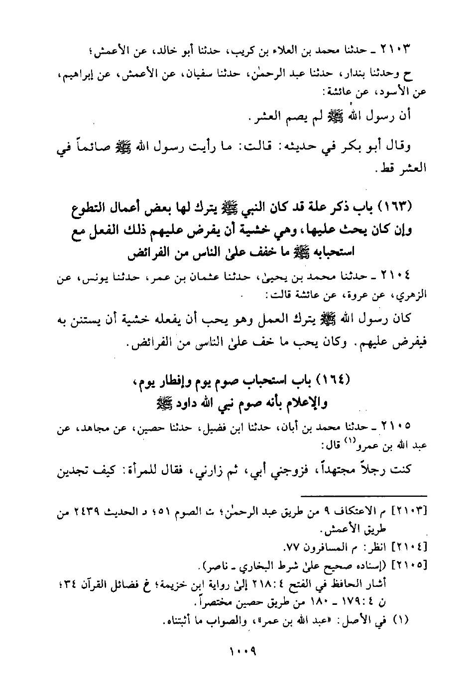 (164) بَاب اسْتِحْبَاب صَوْمِ يَوْمٍ وَإِفْطَارِ يَوْمٍ، وَالْإِعْلَامِ بِأَنَّهُ صَوْمُ نَبِيّ اللَّه دَاوُدَ - صَلَّى اللَّه عَلَيْهِ وَسَلَّمَ