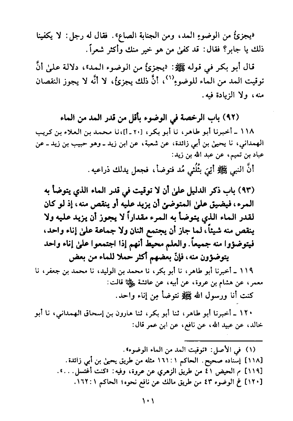 (92) بَابُ الرُّخْصَةِ فِي الْوُضُوءِ بِأَقَلَّ مِنْ قَدْرِ الْمُدِّ مِنَ الْمَاءِ