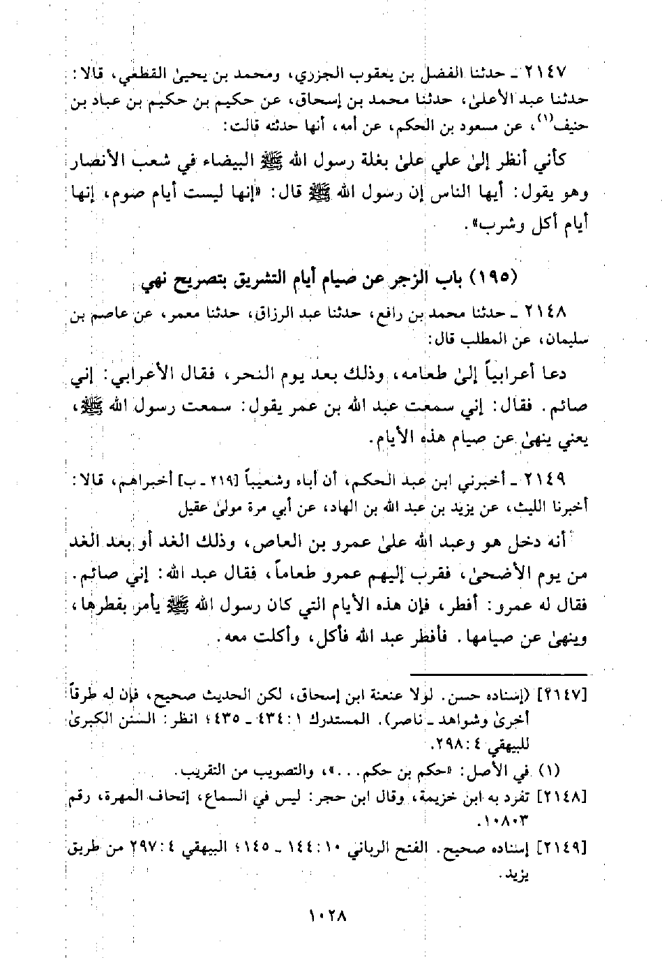 (195) بَاب الزَّجْرِ عَنْ صِيَامِ أَيَّامِ التَّشْرِيقِ بِتَصْرِيحِ نَهْيٍ