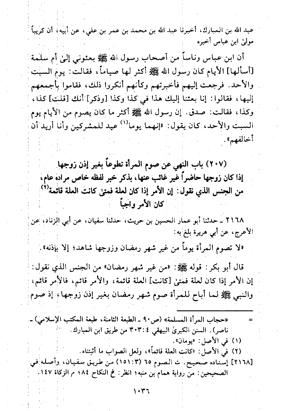 = "حجاب المرأة المسلمة" (ص 90 - الطبعة الثامنة، طبعة المكتب الإسلامي) - ناصر). السنن الكبرى البيهقي 4: 303 من طريق ابن المبارك.