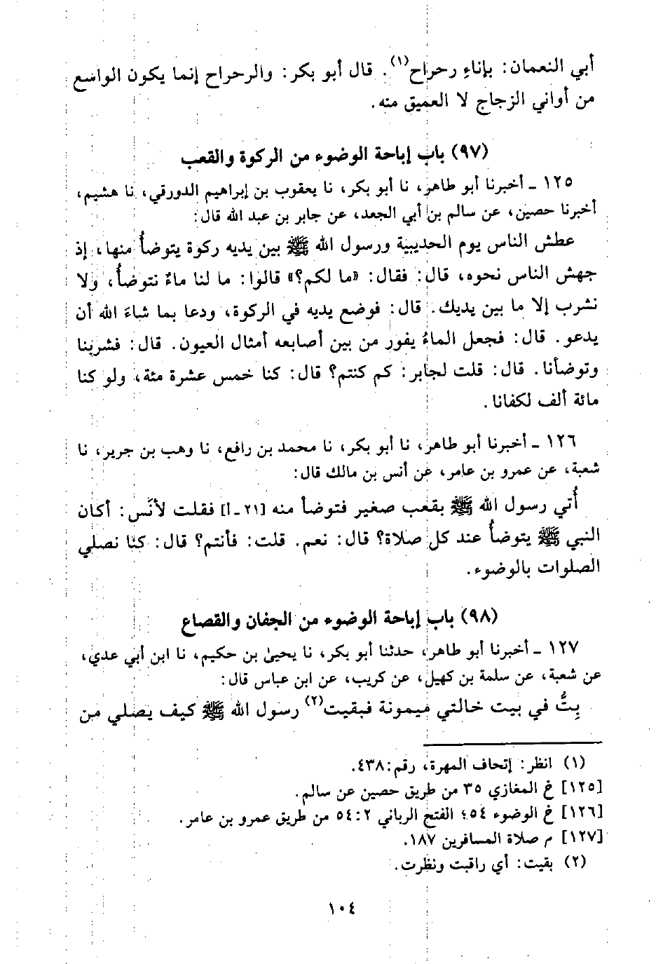 [126] خ الوضوء 54؛ الفتح الرباني 2: 54 من طريق عمرو بن عامر.