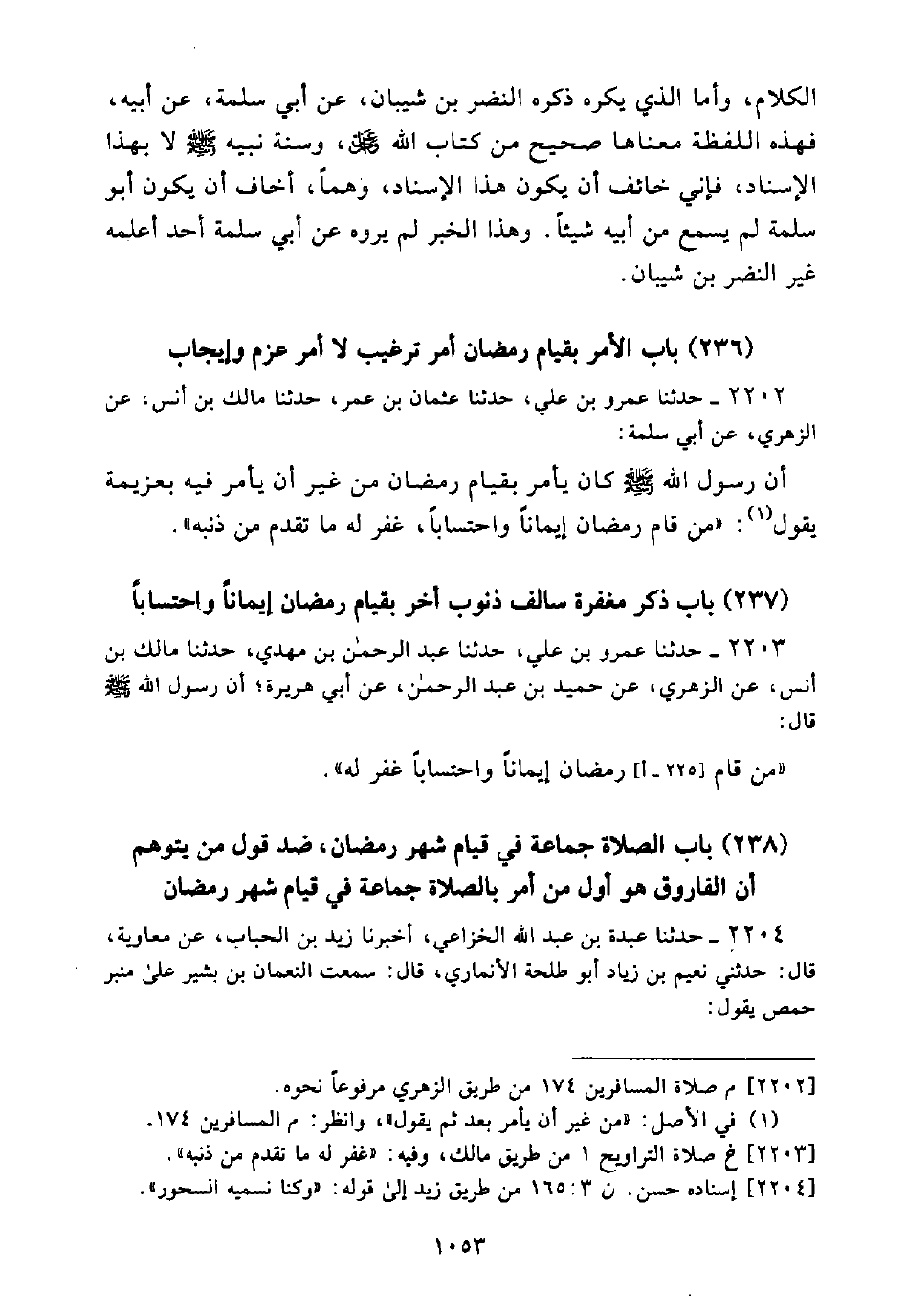 (237) بَاب ذِكْر مَغْفِرَةِ سَالِفِ ذُنُوبٍ أُخَرَ بِقِيَامِ رَمَضَانَ إِيمَانًا وَاحْتِسَابًا