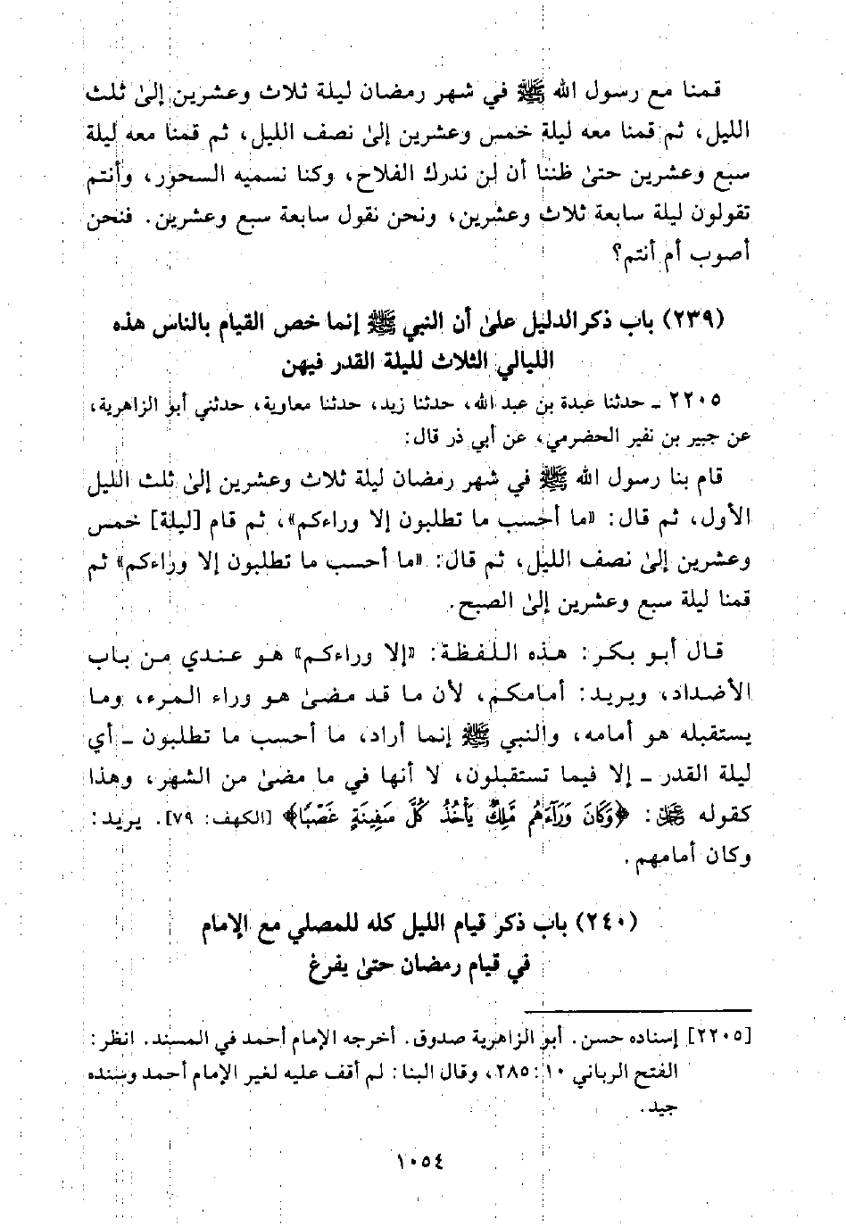 (240) بَاب ذِكْر قِيَامِ اللَّيْلِ كُلِّهِ لِلْمُصَلِّي مَعَ الْإِمَامِ فِي قِيَامِ رَمَضَانَ حَتَّى يَفْرُغَ