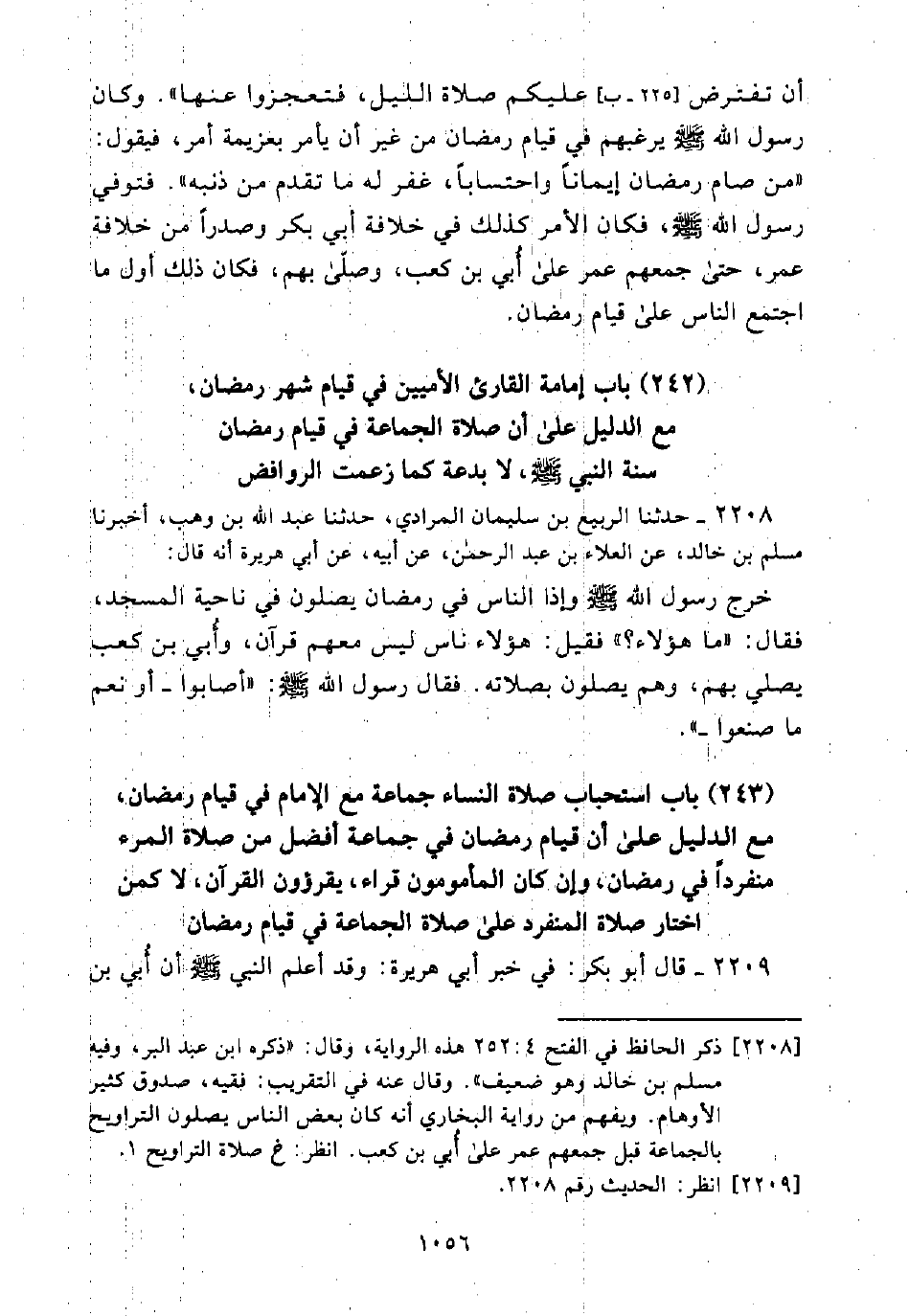 (243) بَاب اسْتِحْبَاب صَلَاةِ النِّسَاءِ جَمَاعَةً مَعَ الْإِمَامِ فِي قِيَامِ رَمَضَانَ، مَعَ الدَّلِيلِ عَلَى أَنَّ قِيَامَ رَمَضَانَ فِي جَمَاعَةٍ أَفْضَلُ مِنْ صَلَاةِ الْمَرْءِ مُنْفَرِدًا فِي رَمَضَانَ، وَإِنْ كَانَ الْمَأْمُومُونَ قُرَّاءً، يَقْرَؤونَ الْقُرْآنَ، لَا كَمَنِ اخْتَارَ صَلَاةَ الْمُنْفَرِدِ عَلَى صَلَاةِ الْجَمَاعَةِ فِي قِيَامِ رَمَضَانَ
