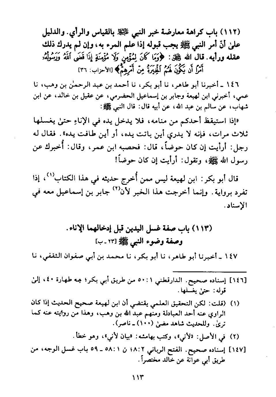 [146] إسناده صحيح. الدارقطني 1: 50 من طريق أبي بكر؛ جه طهارة 40، إلى قوله: حتى يغسلها.