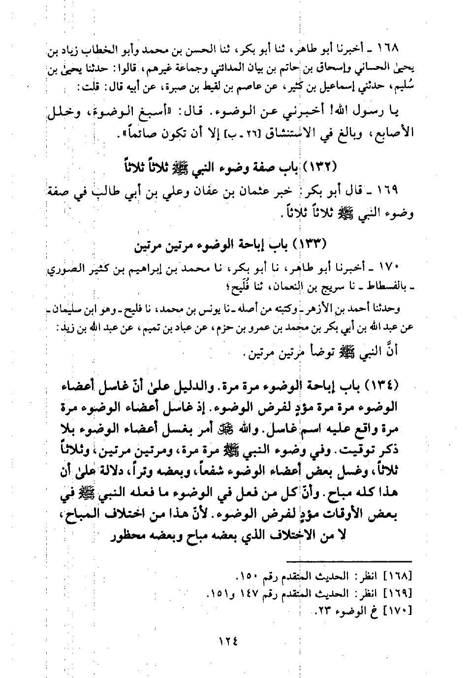 169 - قَالَ أَبُو بَكْرٍ: خَبَرُ عُثْمَانَ بْنِ عَفَّانَ وَعَلِيِّ بْنِ أَبِي طَالِبٍ فِي صِفَةِ وُضُوءِ النَّبِيِّ - صَلَّى اللَّهُ عَلَيْهِ وَسَلَّمَ - ثَلَاثًا ثَلَاثًا.