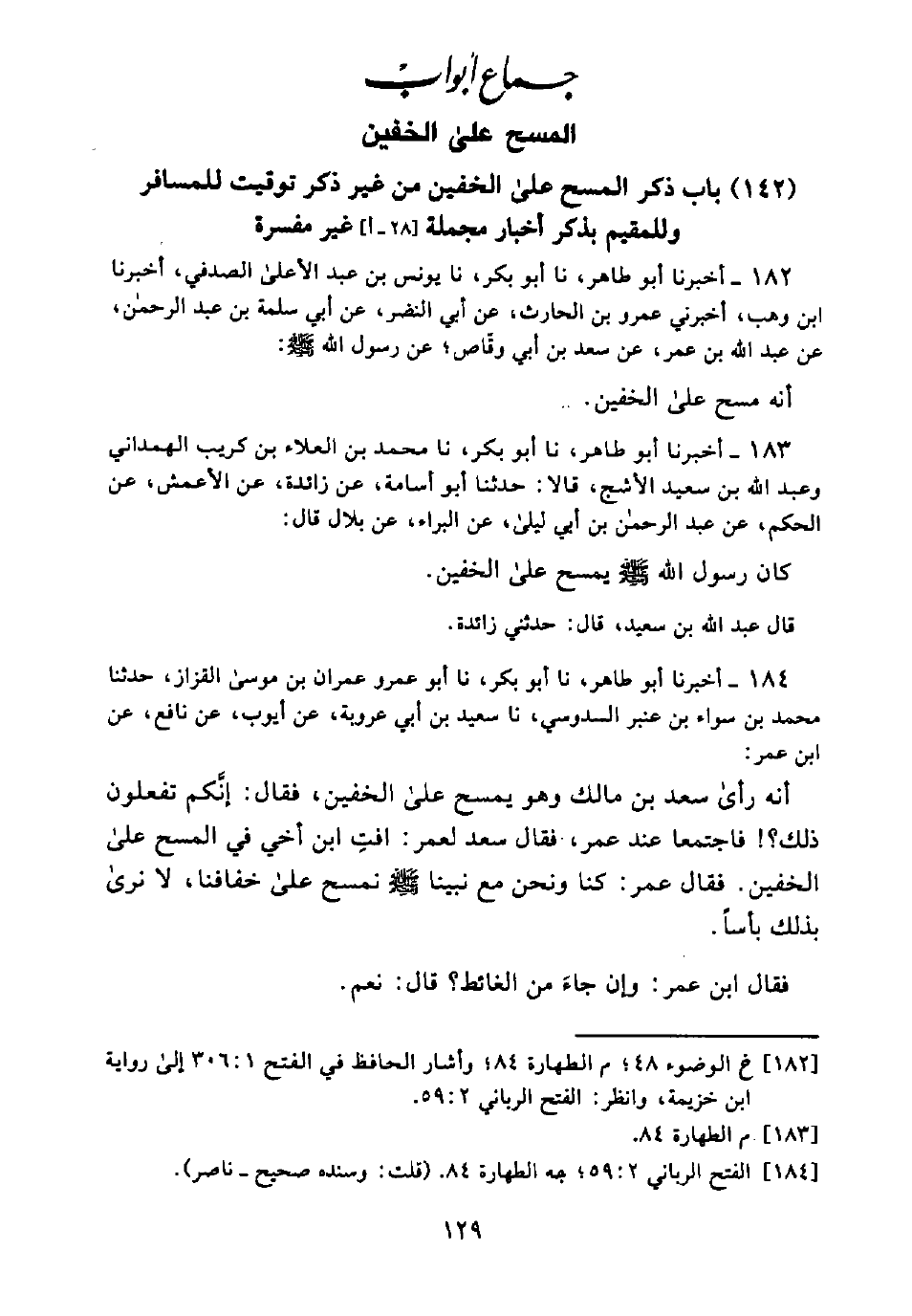 [184] الفتح الرباني 2: 59؛ جه الطهارة 84. (قلت: وسنده صحيح - ناصر).