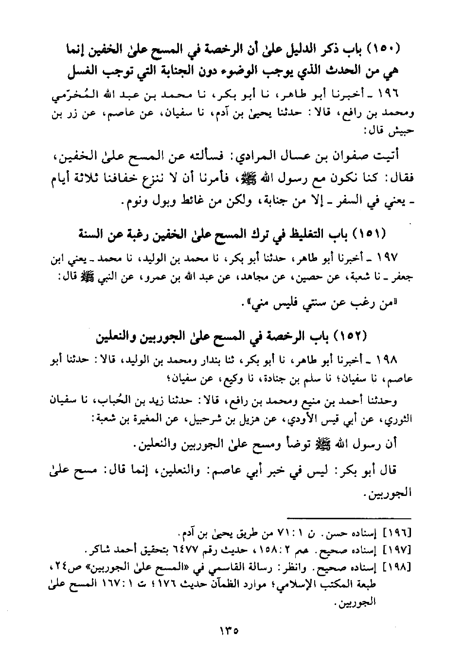 196 - أَخْبَرَنَا أَبُو طَاهِرٍ، نَا أَبُو بَكْرٍ، نَا مُحَمَّدُ بْنُ عَبْدِ اللَّهِ الْمُخَرِّمِيُّ، وَمُحَمَّدُ بْنُ رَافِعٍ، قَالَا: حَدَّثَنَا يَحْيَى بْنُ آدَمَ، نَا سُفْيَانُ، عَنْ عَاصِمٍ، عَنْ زِرِّ بْنِ حُبَيْشٍ قَالَ: