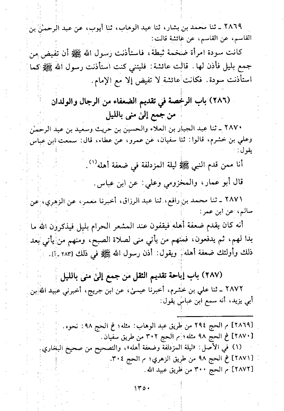 (286) بَابُ الرُّخْصَةِ فِي تَقْدِيمِ الضُّعَفَاءِ مِنَ الرِّجَالِ وَالْوِلْدَانِ مِنْ جَمْعٍ إِلَى مِنًى بِاللَّيْلِ