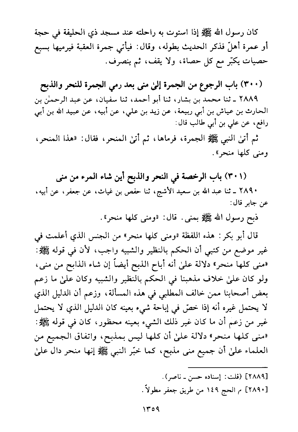 (301) بَابُ الرُّخْصَةِ فِي النَّحْرِ وَالذَّبْحِ أَيْنَ شَاءَ الْمَرْءُ مِنْ مِنًى
