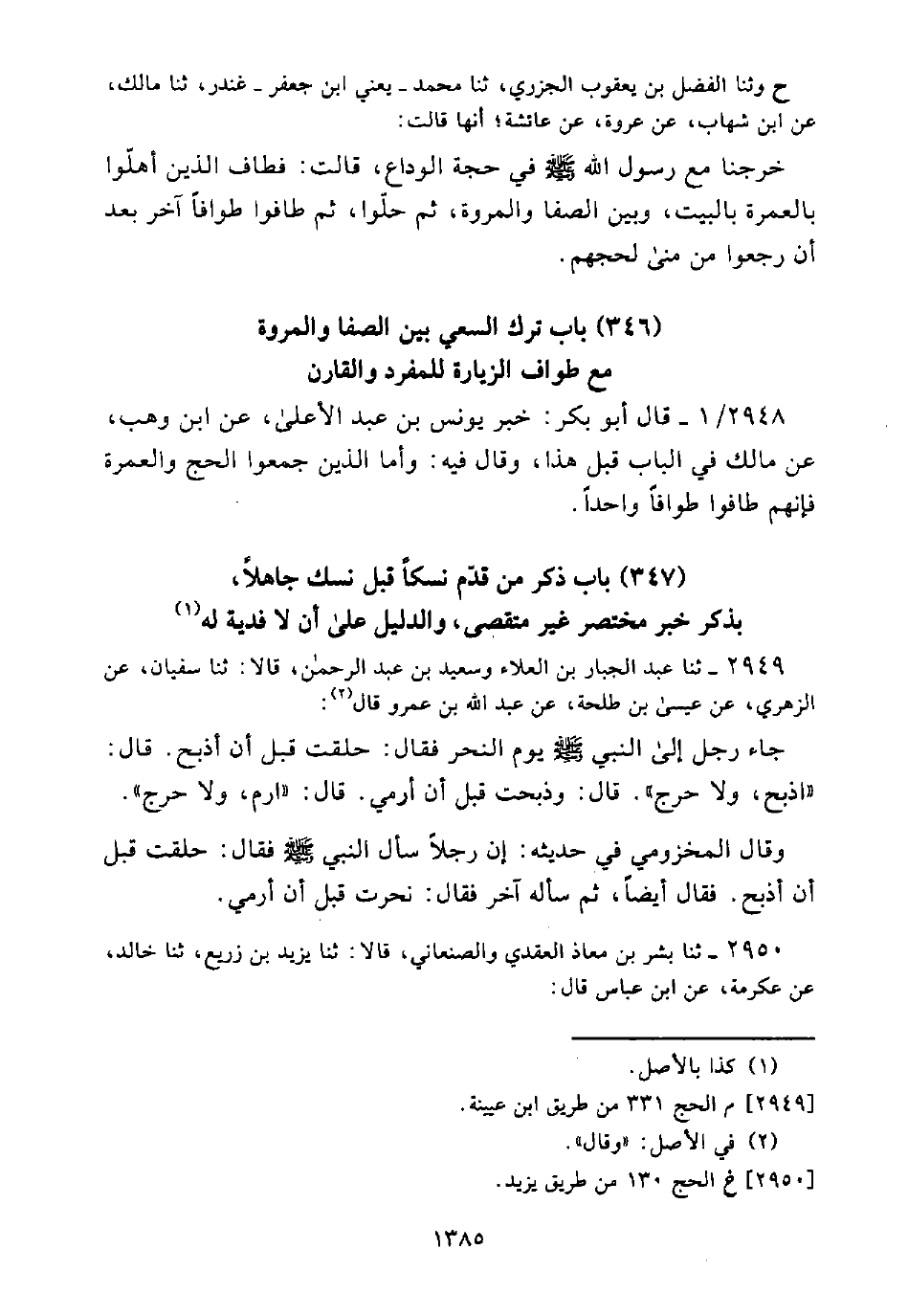2948/ 1 - قَالَ أَبُو بَكْرٍ: خَبَرُ يُونُسُ بْنُ عَبْدِ الْأَعْلَى، عَنِ ابْنِ وَهْبٍ، عَنْ مَالِكٍ فِي الْبَابِ قَبْلَ هَذَا، وَقَالَ فِيهِ: وَأَمَّا الَّذِينَ جَمَعُوا الْحَجَّ وَالْعُمْرَةَ فَإِنَّهُمْ طَافُوا طَوَافًا وَاحِدًا.
