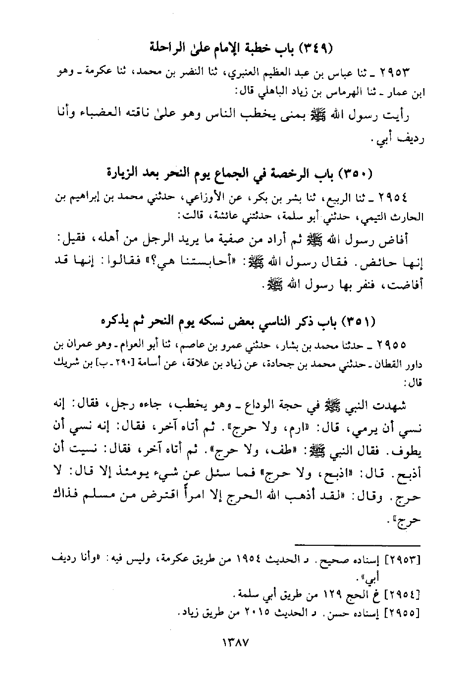 (350) بَابُ الرُّخْصَةِ فِي الْجِمَاعِ يَوْمَ النَّحْرِ بَعْدَ الزِّيَارَةِ