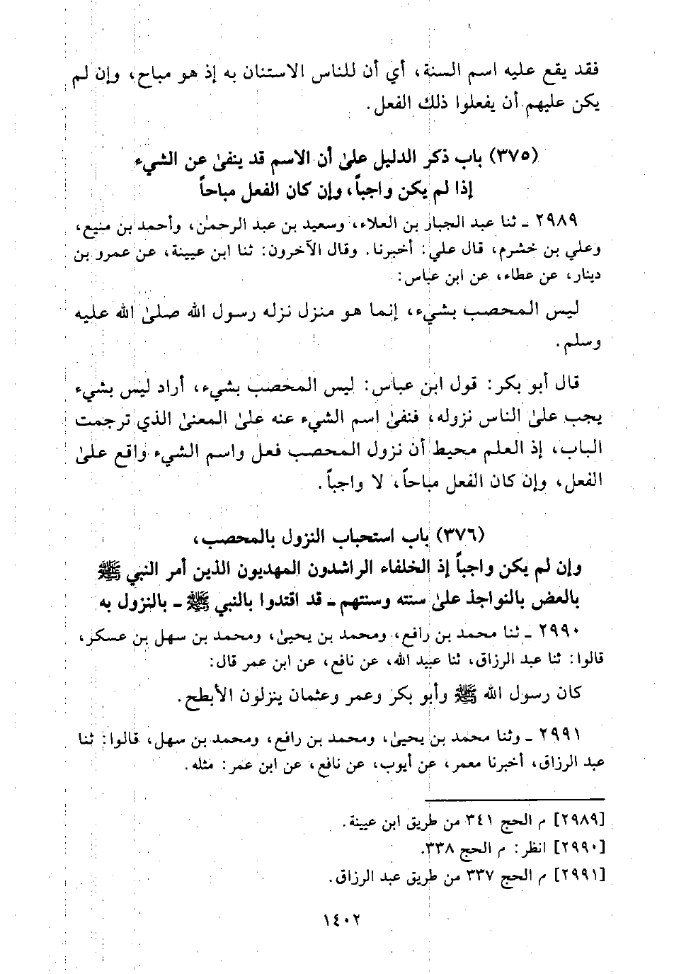 (376) بَابُ اسْتِحْبَابِ النُّزُولِ بِالْمُحَصَّبِ، وَإِنْ لَمْ يَكُنْ ذَلِكَ وَاجِبًا إِذِ الْخُلَفَاءُ الرَّاشِدُونَ الْمَهْدِيُّونَ الَّذِينَ أَمَرَ النَّبِيُّ - صَلَّى اللَّهُ عَلَيْهِ وَسَلَّمَ - بِالْعَضِّ بِالنَّوَاجِذِ عَلَى سُنَّتِهِ وَسُنَّتِهِمْ -قَدِ اقْتَدَوْا بِالنَّبِيِّ - صَلَّى اللَّهُ عَلَيْهِ وَسَلَّمَ -- بِالنُّزُولِ بِهِ