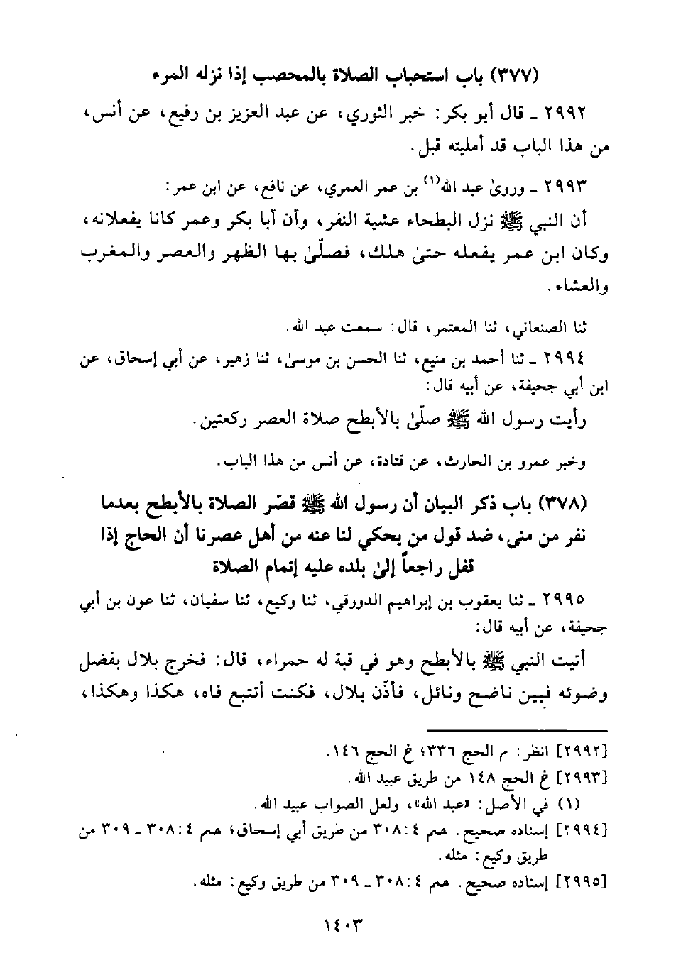 (378) بَابُ ذِكْرِ الْبَيَانِ أَنَّ رَسُولَ اللَّهِ - صَلَّى اللَّهُ عَلَيْهِ وَسَلَّمَ - قَصَرَ الصَّلَاةَ بِالْأَبْطَحِ بَعْدَمَا نَفَرَ مِنْ مِنًى، ضِدَّ قَوْلِ مَنْ يَحْكِي لَنَا عَنْهُ مِنْ أَهْلِ عَصْرِنَا أَنَّ الْحَاجَّ إِذَا قَفَلَ رَاجِعًا إِلَى بَلَدِهِ عَلَيْهِ إِتْمَامُ الصَّلَاةِ
