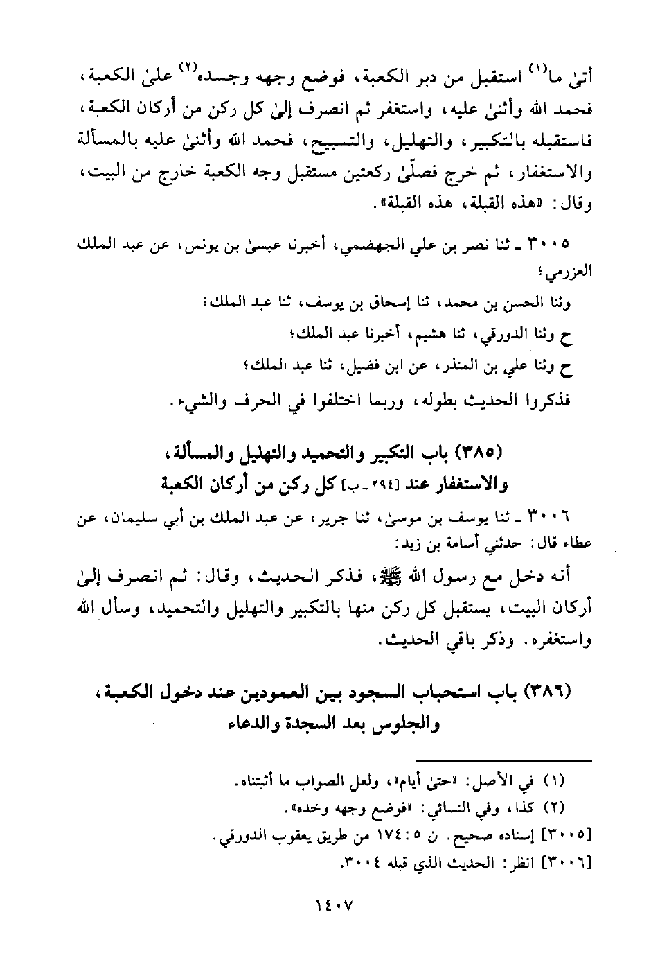 (385) بَابُ التَّكْبِيرِ وَالتَّحْمِيدِ وَالتَّهْلِيلِ وَالْمَسْأَلَةِ، وَالِاسْتِغْفَارِ عِنْدَ [294 - ب] كُلِّ رُكْنٍ مِنْ أَرْكَانِ الْكَعْبَةِ