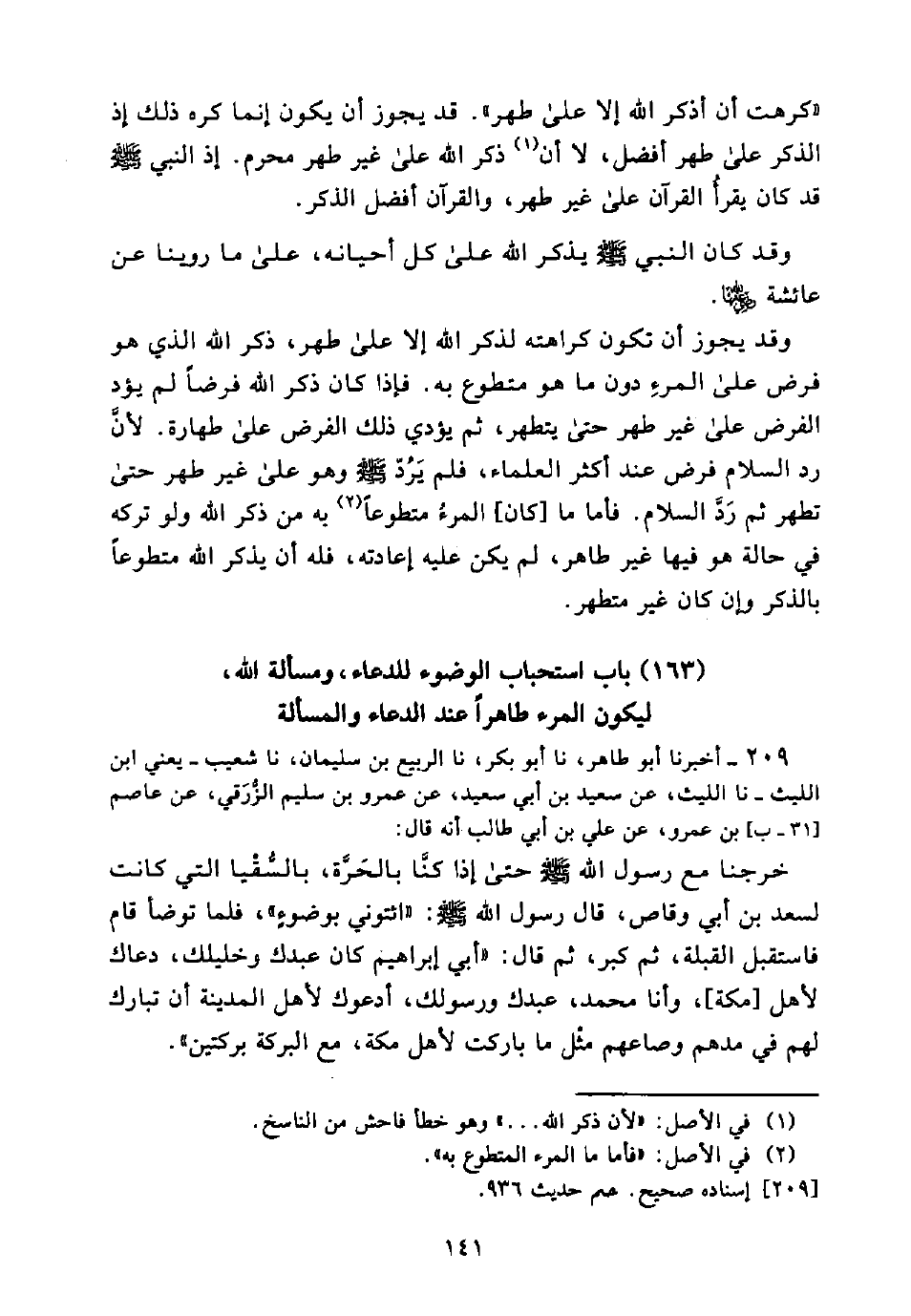 (163) بَابُ اسْتِحْبَابِ الْوُضُوءِ لِلدُّعَاءِ، وَمَسْأَلَةِ اللَّهِ، لِيَكُونَ الْمَرْءُ طَاهِرًا عِنْدَ الدُّعَاءِ وَالْمَسْأَلَةِ