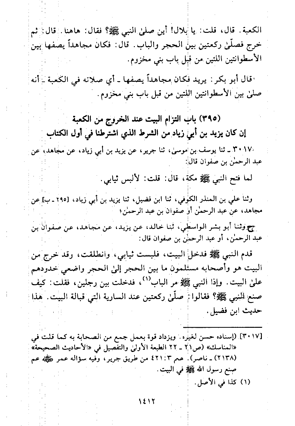 (395) بَابُ الْتِزَامِ الْبَيْتِ عِنْدَ الْخُرُوجِ مِنَ الْكَعْبَةِ إِنْ كَانَ يَزِيدُ بْنُ أَبِي زِيَادٍ مِنَ الشَّرْطِ الَّذِي اشْتَرَطْنَا فِي أَوَّلِ الْكِتَابِ