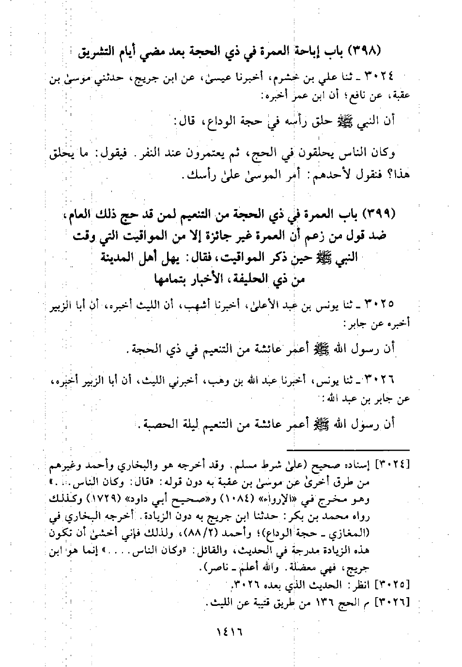 (398) بَابُ إِبَاحَةِ الْعُمْرَةِ فِي ذِي الْحِجَّةِ بَعْدَ مُضِيِّ أَيَّامِ التَّشْرِيقِ