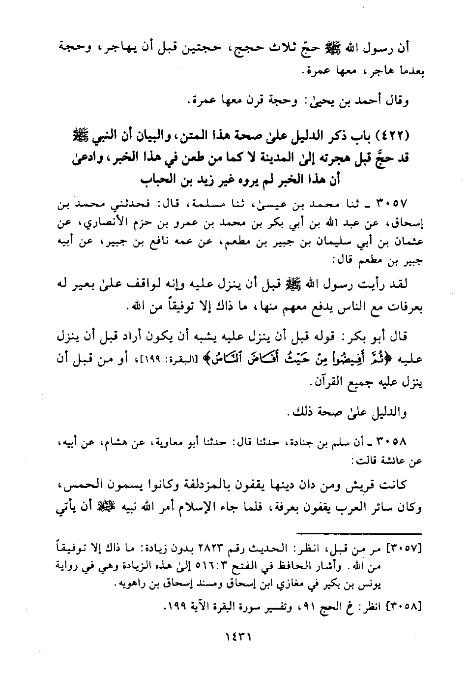 (422) بَابُ ذِكْرِ الدَّلِيلِ عَلَى صِحَّةِ هَذَا الْمَتْنِ، وَالْبَيَانُ أَنَّ النَّبِيَّ - صَلَّى اللَّهُ عَلَيْهِ وَسَلَّمَ - قَدْ حَجَّ قَبْلَ هِجْرَتِهِ إِلَى الْمَدِينَةِ لَا كَمَا مَنْ طَعَنَ فِي هَذَا الْخَبَرِ، وَادَّعَى أَنَّ هَذَا الْخَبَرَ لَمْ يَرْوِهِ غَيْرُ زَيْدِ بْنِ الْحُبَابِ