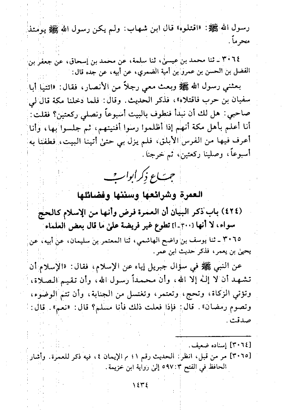 [3065] مر من قبل، انظر: الحديث رقم 1؛ م الإيمان 4، فيه ذكر للعمرة. وأشار الحافظ في الفتح 3؛ 597 إلى رواية ابن خزيمة.