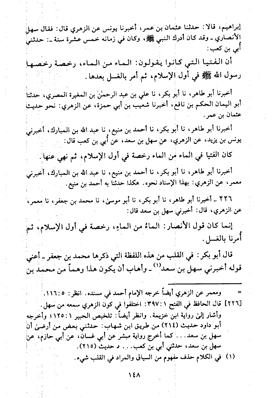 [226] قال الحافظ في الفتح 1: 397: اختلفوا في كون الزهري سمعه من سهل.