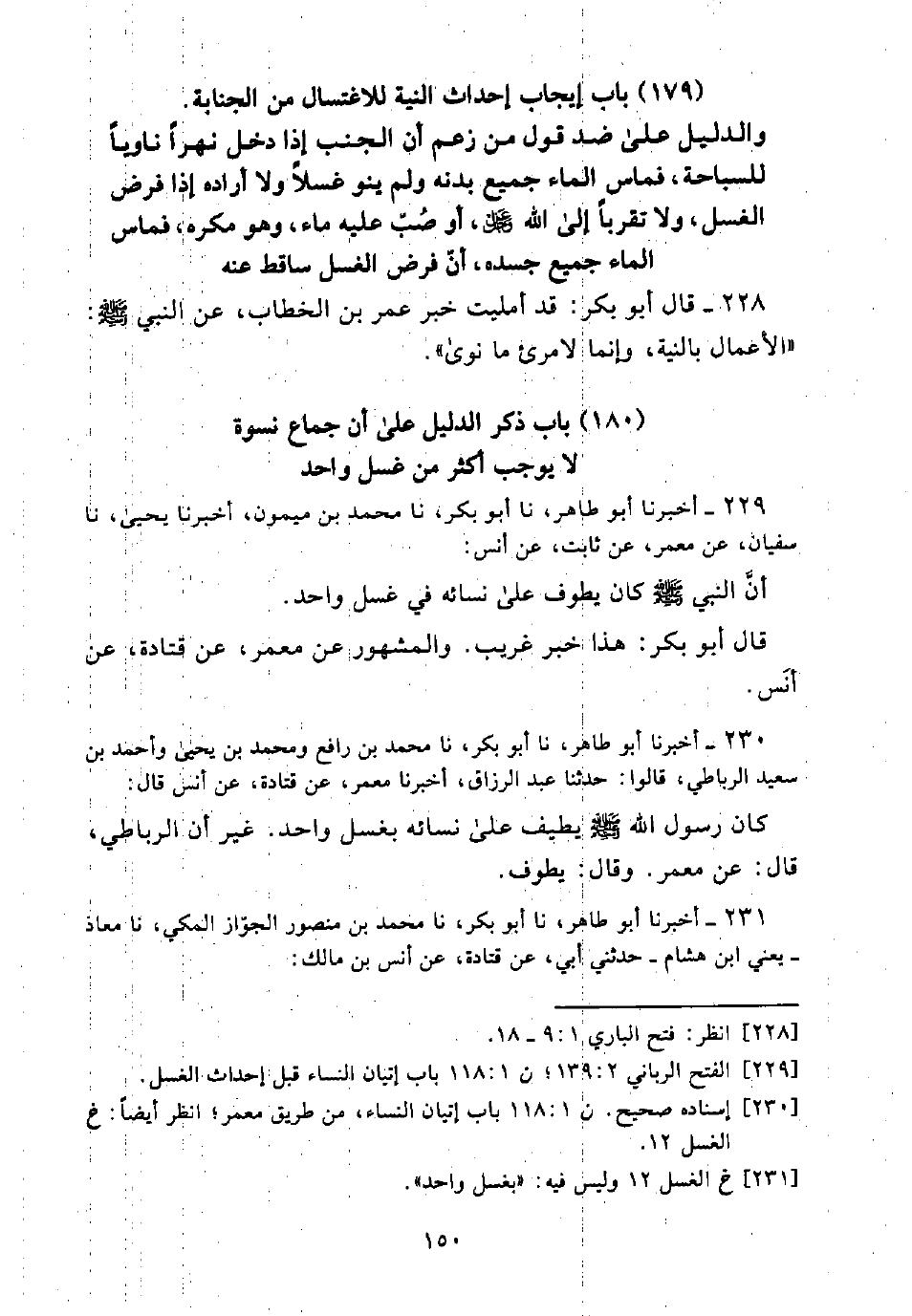 [229] الفتح الرباني 2: 139؛ ن 1: 118 باب إتيان النساء قبل إحداث الغسل.