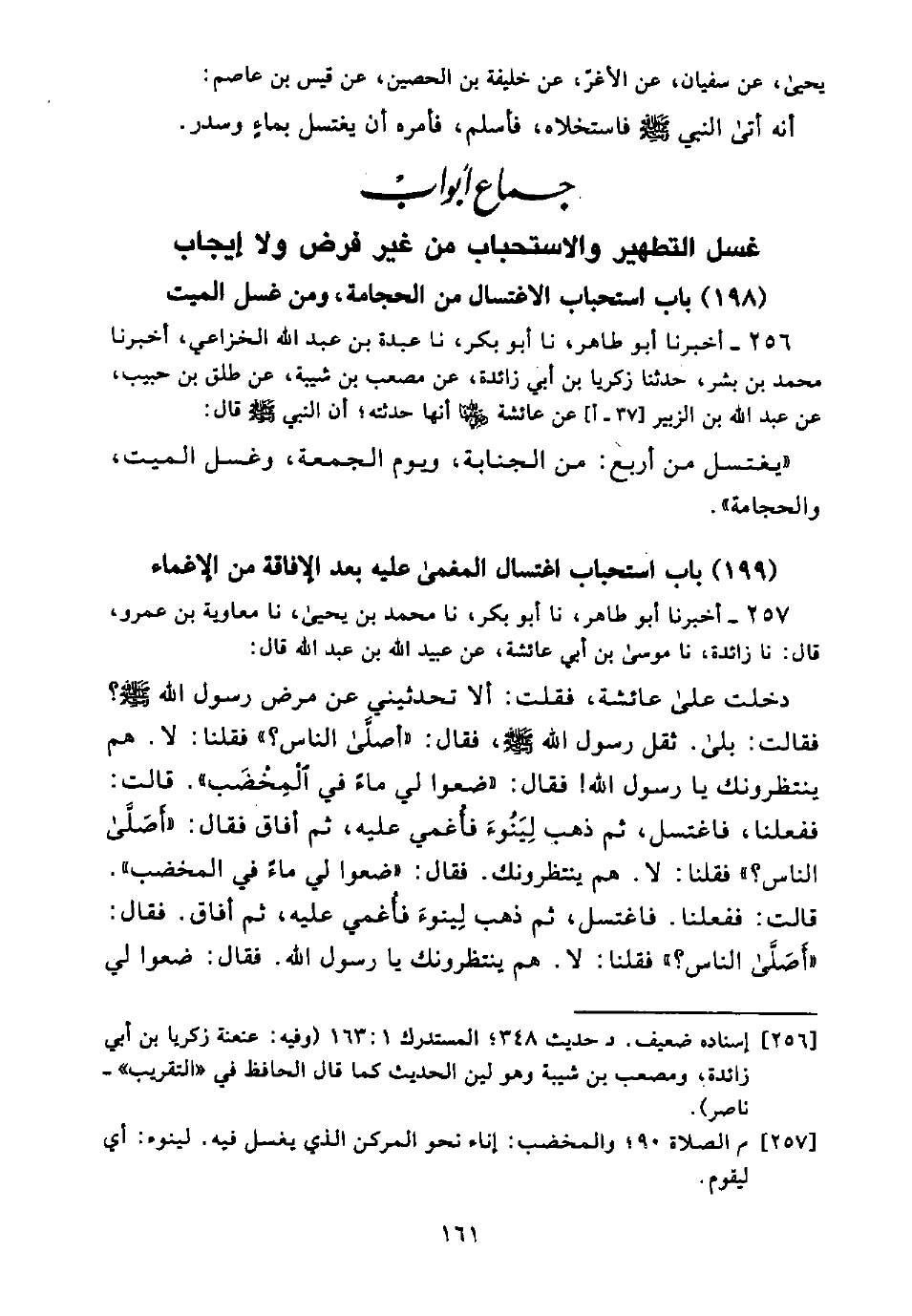 [256] إسناده ضعيف. د حديث 348؛ المستدرك 1: 163 (وفيه: عنعنة زكريا بن أبي زائدة، ومصعب بن شيبة وهو لين الحديث كما قال الحافظ في "التقريب" - ناصر).