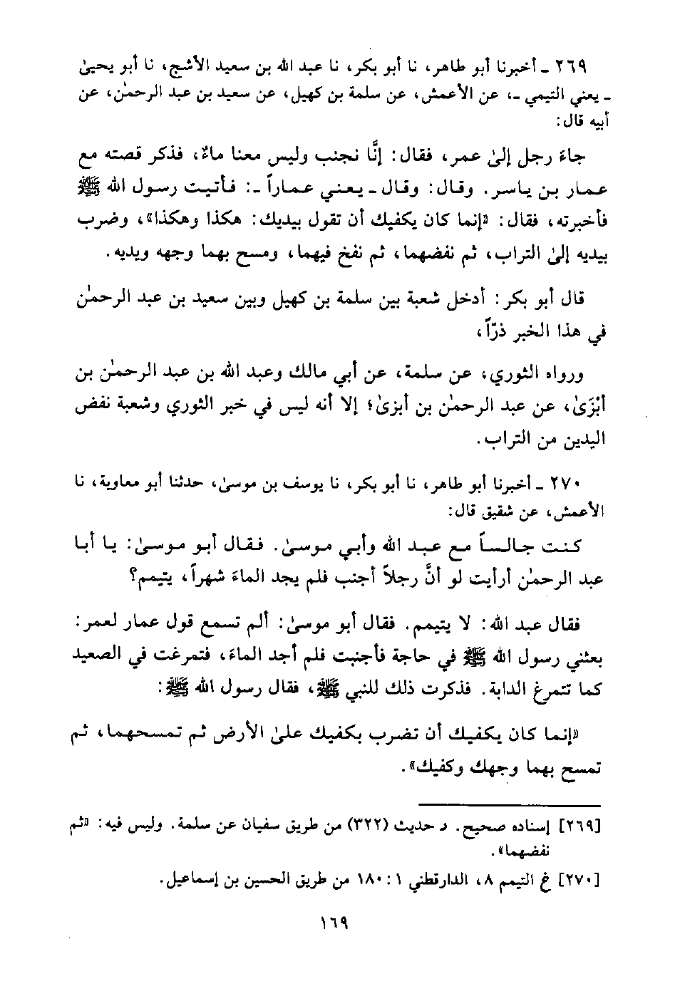 [270] خ التيمم 8، الدارقطني 1: 180 من طريق الحسين بن إسماعيل.